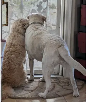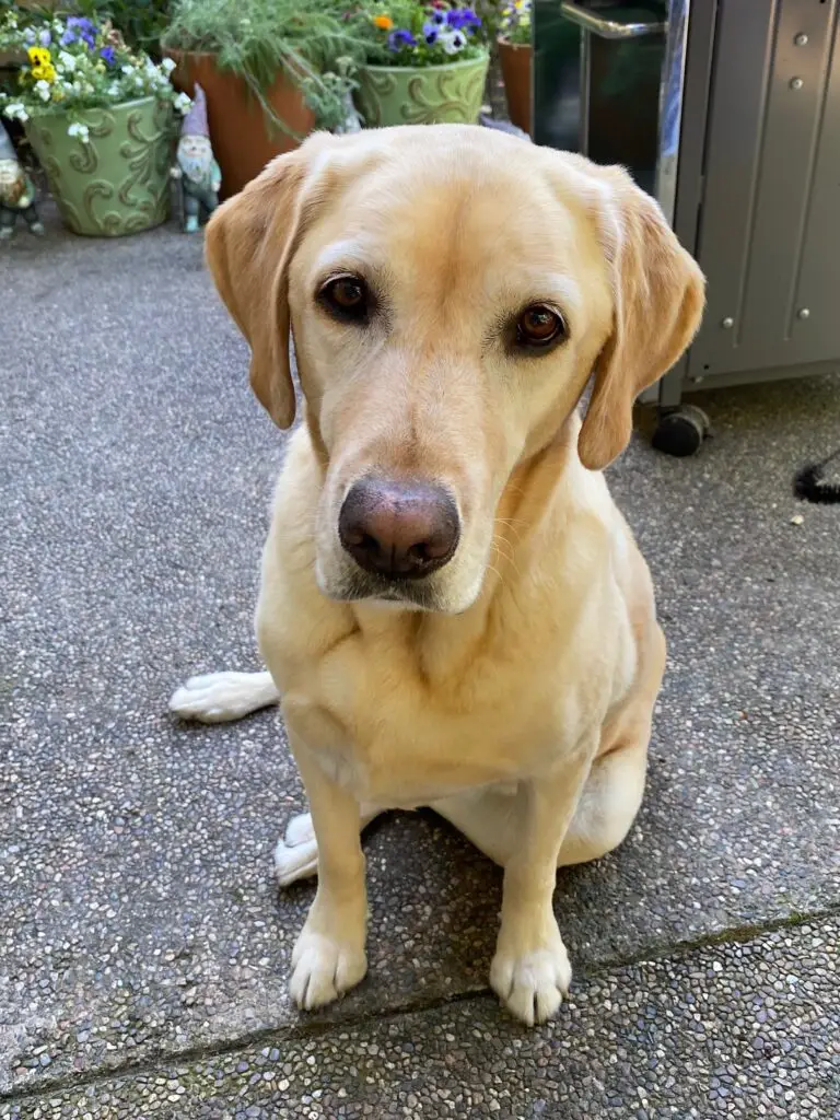 Polly, per se, found her new owner right there in her neighborhood. She was not being cared for properly and essentially left to her own devices when she landed on her new person’s doorstep, quite literally. As fate would have it, Polly obtained ownership of her new person and visa versa. This is the nutshell version, but let’s say they rescued each other. Polly’s newfound guardian was grieving the loss of no less than one month prior, her best buddy. Also, being a white Lab.
