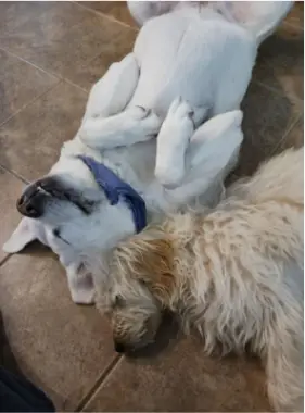 Polly now plays with her cohort without a doubt or concern. She is back 95%. She still needs to rest at times but is unrecognizable from her former state.