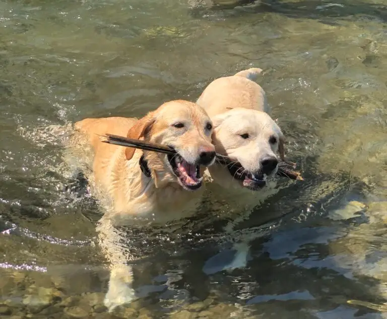 Below is Eddy with her buddy enjoying an outing at the river. Look closely at her left hind leg movement. She has an even and comfortable stride.
